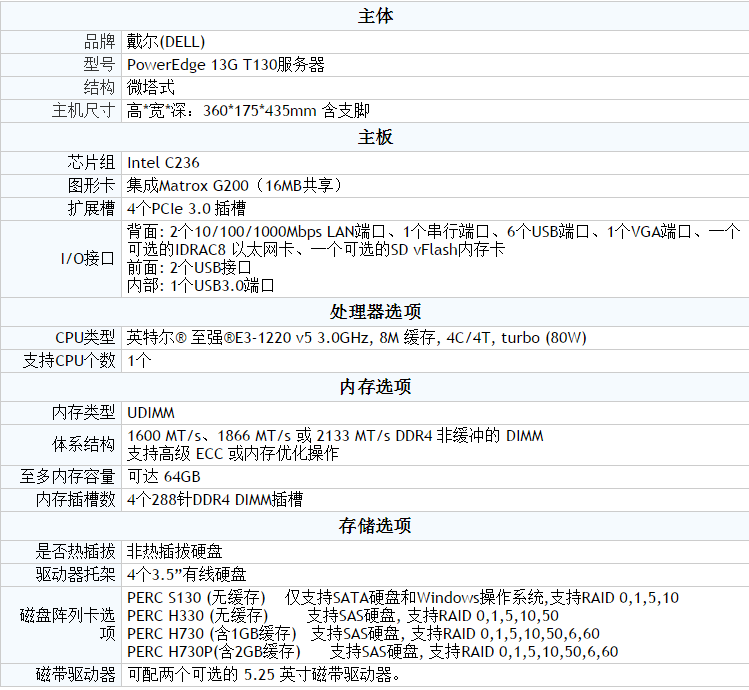 戴尔T130入门级塔式服务器